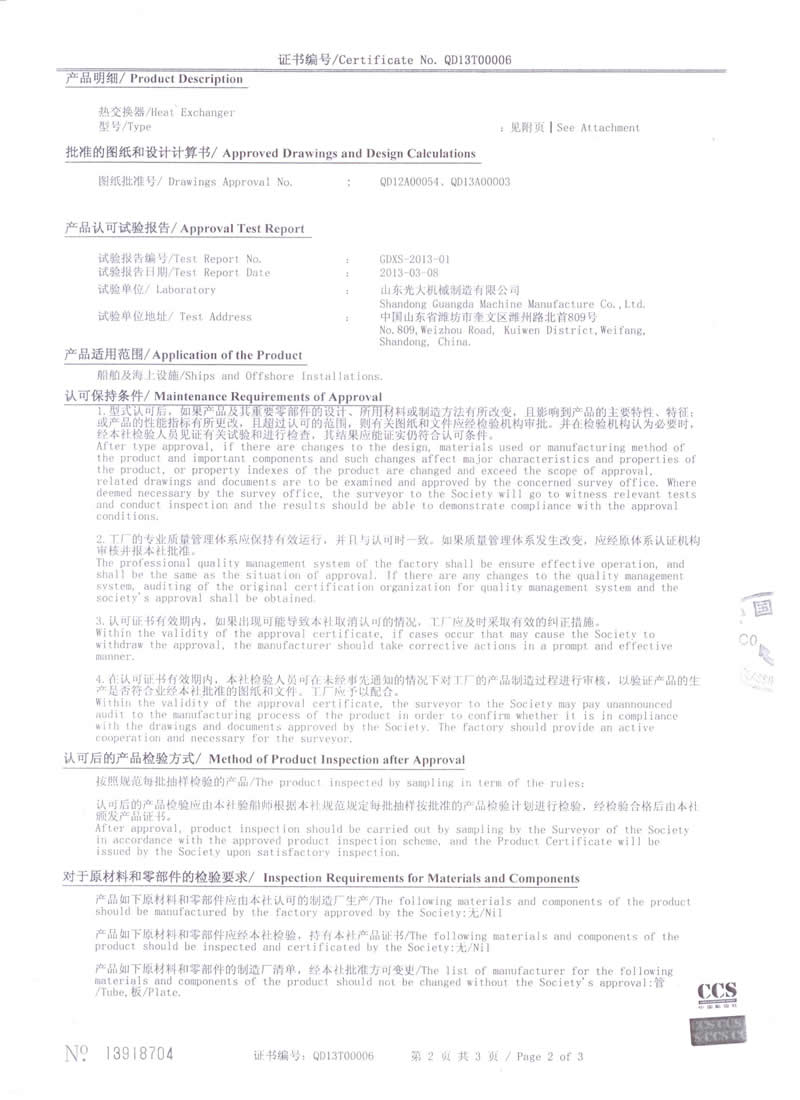 熱交換器-型式認(rèn)可證書